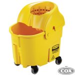 The WAVEBRAKE 35 QT INSTITUTION BUCKET AND WRINGER in yellow is made of non-metal construction and is ideal for correctional facilities and healthcare.