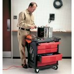 The Rubbermaid 7734-88 5-Drawer Mobile Work Centre is a robust and versatile mobile workbench designed to meet the demanding needs of various workplaces, including manufacturing, maintenance, warehousing, retail, and hospitals.
