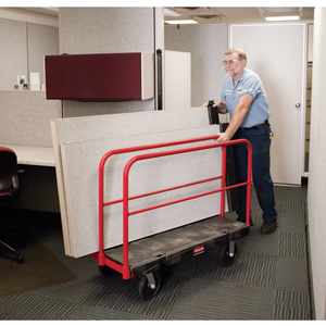 The Rubbermaid FG446800 Sheet & Panel Truck safely and efficiently moves large, oversized, and hard-to-handle items, making it an ideal choice for various applications such as building sites, warehouses, retail environments, and hotels.Â