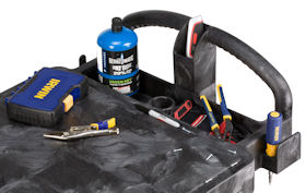 - Moulded-in storage compartments, holsters, hooks, and notches