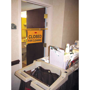‘Closed for Cleaning’ Imprint:Â The sign is imprinted with the message ‘Closed for Cleaning,’ effectively communicating the restricted access status to nearby individuals.