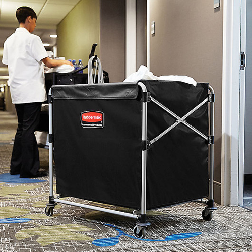 Rubbermaid Collapsible 300 Litre X-Cart X-frame folding cart transports and stores large bulky loads of sheets and towels, etc., then folds compactly for storage. Suitable for Hospitals, Hotels, Hostels, Resorts, Pools and Fitness Centres