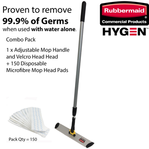 | RHMHDP | Hygen Mop Handle with Head and 150 Disposable Pads |