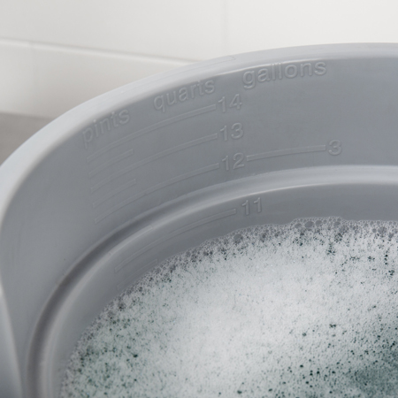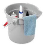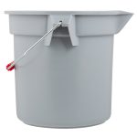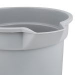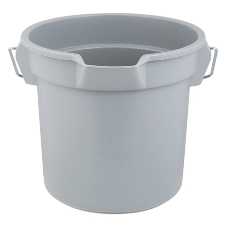 Rubbermaid FG261400GRAY BRUTE 9.5 Litre Round Bucket is a Heavy duty bucket with thick wall construction and moulded-in measurements in quart, pint, gallon, and litre graduations on the inside of the bucket, making it easy to add the proper amount of chemicals and water.